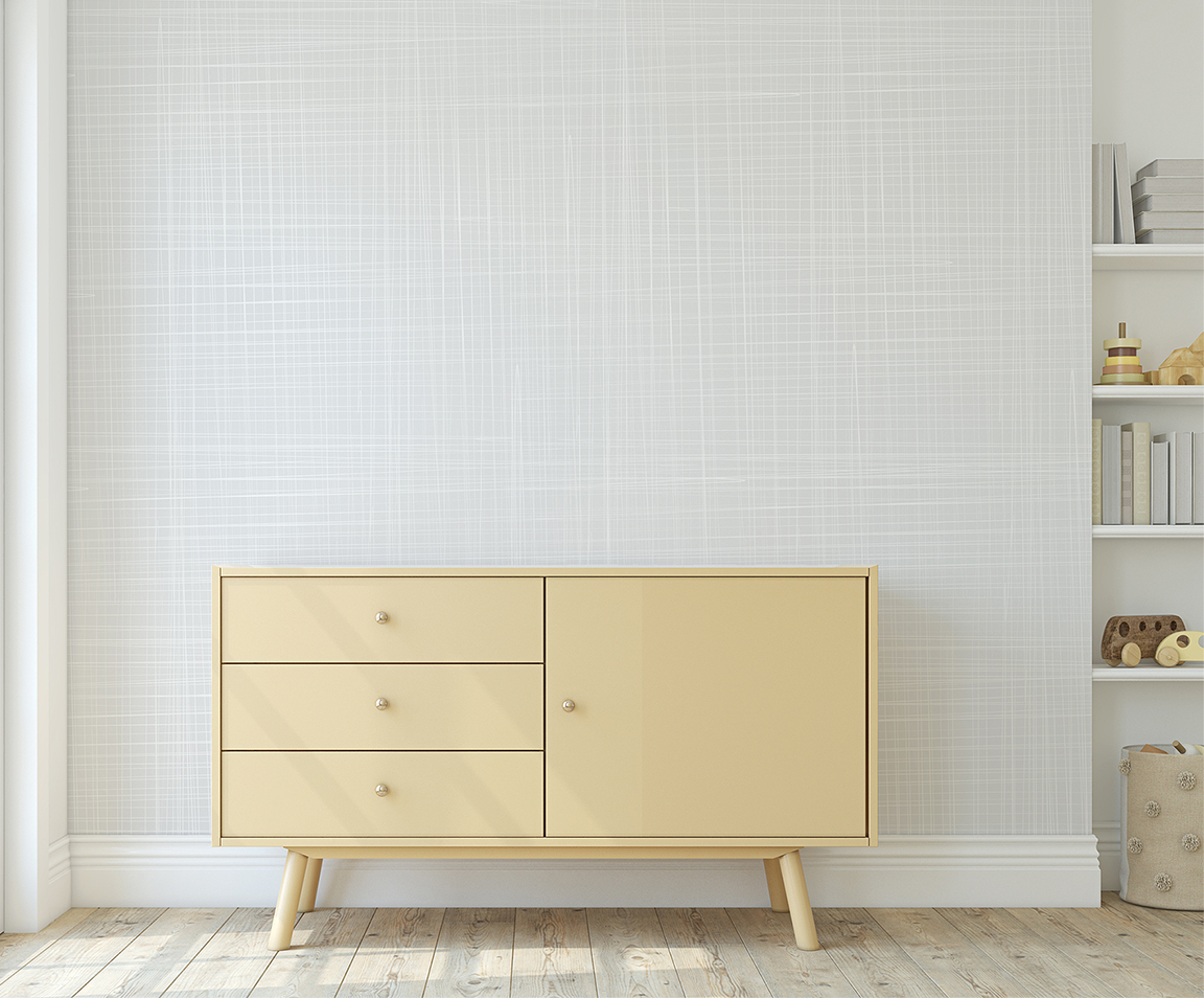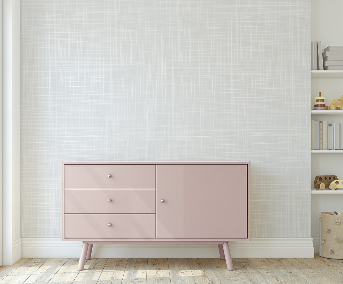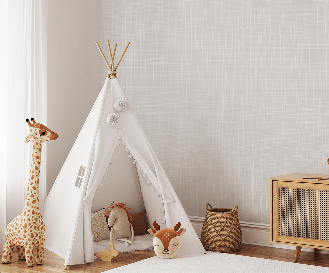 Wzór pattern przedstawia subtelną siatkę drobnych linii o nieregularnej strukturze, przypominającą ręcznie rysowaną kratkę. Jej stonowana, szaro-biała kolorystyka sprawia, że tapeta doskonale współgra z naturalnymi materiałami – drewnem, wikliną czy jasnymi tkaninami. Dzięki temu łatwo dopasować ją do różnych aranżacji od skandynawskiego minimalizmu, przez nowoczesny styl, aż po przytulne wnętrza w duchu boho. Tapeta posiada delikatne szare tło