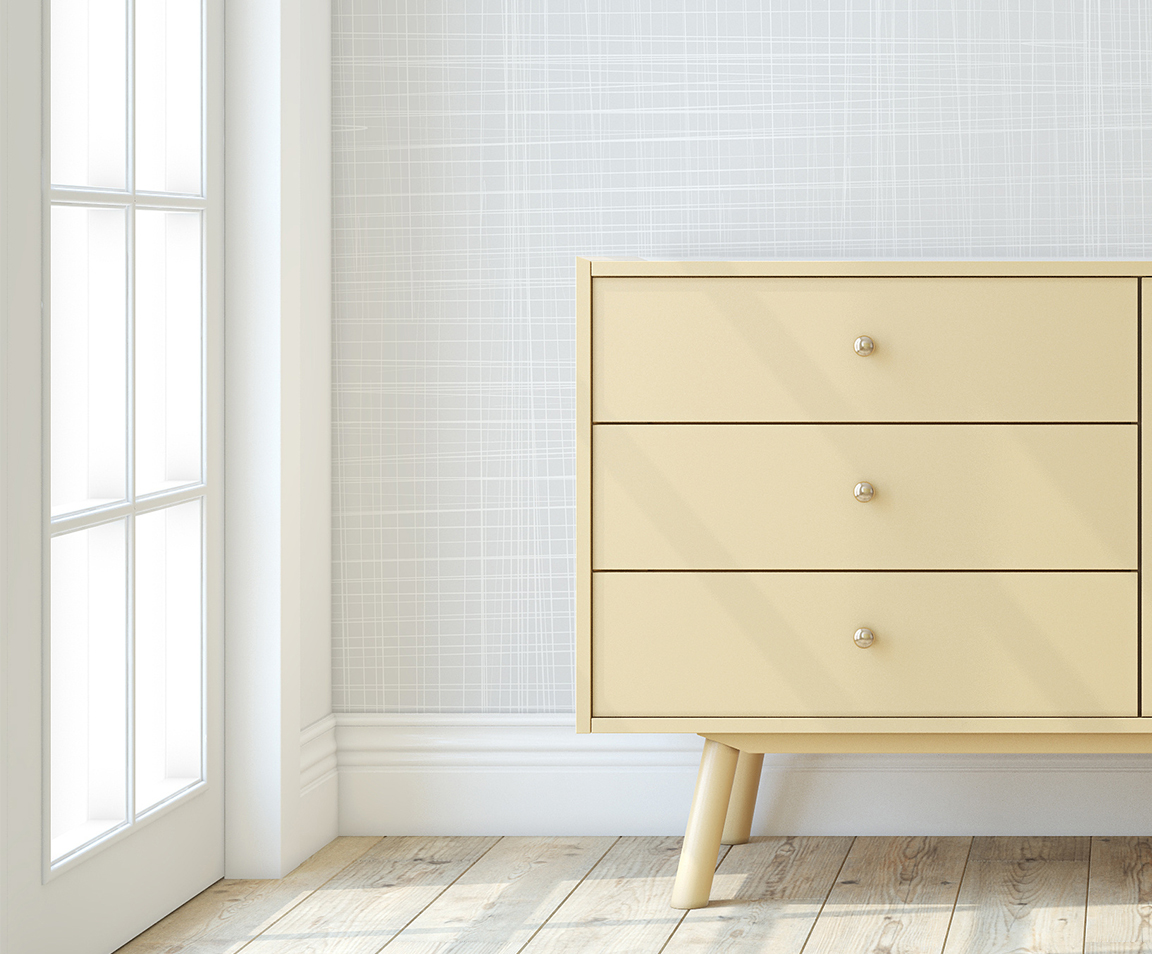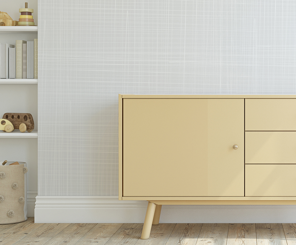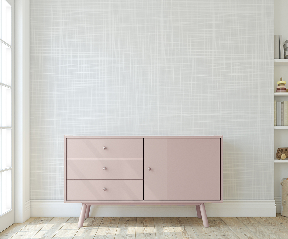Wzór pattern przedstawia subtelną siatkę drobnych linii o nieregularnej strukturze, przypominającą ręcznie rysowaną kratkę. Jej stonowana, szaro-biała kolorystyka sprawia, że tapeta doskonale współgra z naturalnymi materiałami – drewnem, wikliną czy jasnymi tkaninami. Dzięki temu łatwo dopasować ją do różnych aranżacji od skandynawskiego minimalizmu, przez nowoczesny styl, aż po przytulne wnętrza w duchu boho. Tapeta posiada delikatne szare tło